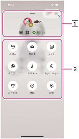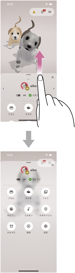 - aiboメニューが表示されている部分を上方向にスワイプする。