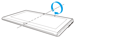 Coloque la computadora VAIO sobre una superficie plana, sosténgala con las dos manos y, a continuación, gírela 360 grados en sentido longitudinal una sola vez.