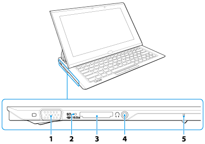 Décrit les fonctionnalités sur les côtés de l'ordinateur VAIO, telles que les ports de connexion.