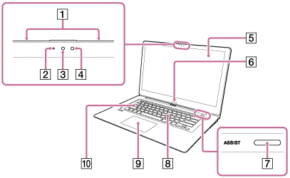 Les aimants sont intégrés autour de l'écran tactile, ou au niveau des coins gauche et droit du clavier, selon les modèles. Ne placez pas les cartes de crédit, ou autres dispositifs pouvant être altérés par les champs magnétiques, près de votre ordinateur VAIO. L'ordinateur peut provoquer une altération des données.