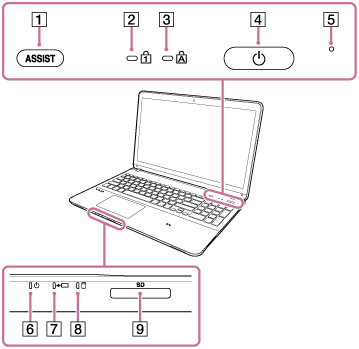 Témoin d'alimentation (Mise en marche de votre ordinateur VAIO) -
