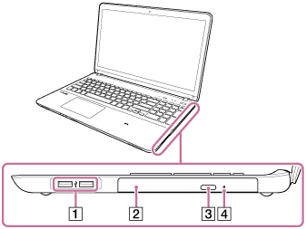 Décrit les fonctionnalités sur les côtés de l'ordinateur VAIO, telles que les ports de connexion.