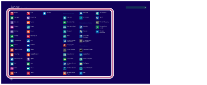 • Vous pouvez rechercher des applications dans la zone de recherche du coin supérieur droit de l'écran Applications. Lorsque vous avez installé de nombreuses applications, il est utile d'effectuer des recherches dans la zone de recherche.