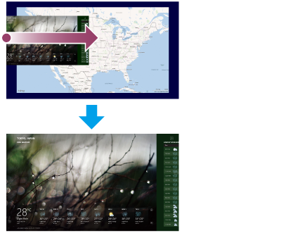 Affichez les applications en cours d’exécution et faites glisser l’icône de l’application souhaitée du bord gauche vers le centre. Pour afficher les applications en cours d’exécution, consultez le Consulter les Applications en cours d’exécution.