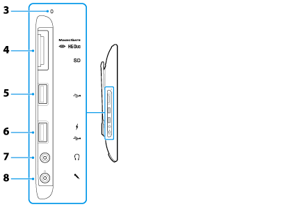 Describes the features on the sides of the VAIO computer, such as connection ports.
