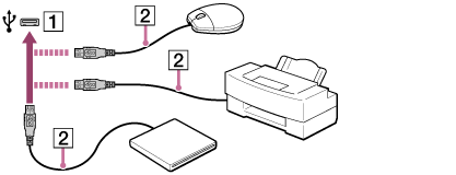 You can connect a Universal Serial Bus (USB) device such as a mouse, floppy disk drive, speaker or printer to your VAIO computer.