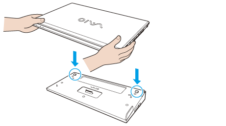 1. Gently lower your VAIO computer and push the area indicated by the arrows until the computer clicks into place.
