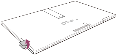 Cuando extraiga el gancho de pluma de la computadora VAIO, asegúrese de tirar del gancho en la dirección de la flecha. No ejerza excesiva presión en el gancho de pluma, ya que puede dañarlo.