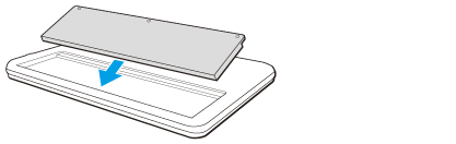 Faites pivoter la batterie dans le sens de la flèche, puis emboîtez-la dans le compartiment en appuyant dessus jusqu'à ce qu'elle s'enclenche.