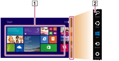 응용 프로그램과 파일 검색, 콘텐츠 공유, 다른 장치에서 콘텐츠를 재생하거나 인쇄, VAIO 컴퓨터 설정 등의 작업을 수행할 수 있습니다.