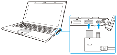 도킹 스테이션과 함께 제공된 AC 어댑터를 사용해야 합니다. VAIO 컴퓨터와 함께 제공된 AC 어댑터를 사용하면 저장하지 않은 데이터가 모두 손실될 수 있습니다.