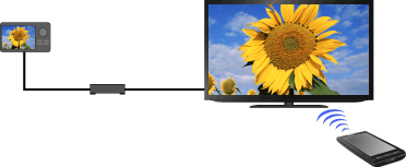 啟用Renderer功能時,直接操作裝置可以在電視機螢幕上播放控制器(如數位相機)中的相片/音樂/視訊檔案。也可透過家用網路將行動裝置(如智慧型電話)用作電視機的遙控器。