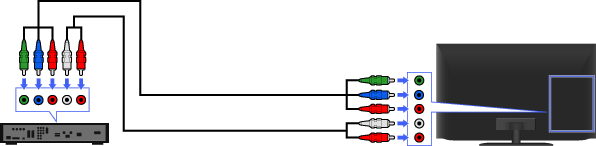 ถ้าเครื่องเล่นแผ่น BD/DVD ของท่านมีพอร์ตวิดีโอคอมโพเนนต์ (ช่องต่อ) ให้เชื่อมต่อเข้ากับทีวีโดยใช้สายวิดีโอคอมโพเนนต์และสายสัญญาณเสียง