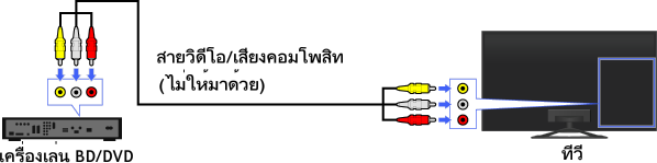 ถ้าเครื่องเล่นแผ่น BD/DVD ของท่านมีพอร์ตวิดีโอคอมโพสิท (ช่องต่อ) ให้เชื่อมต่อเข้ากับช่องนี้โดยใช้สายวิดีโอ/เสียงคอมโพสิท