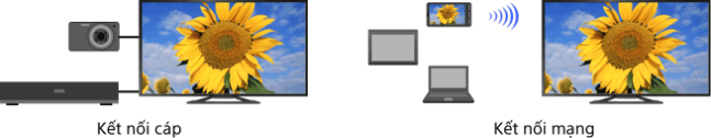 Kết nối nhiều thiết bị khác nhau (ví dụ: máy ghi âm BD, máy ảnh kỹ thuật số, PC, điện thoại thông minh, máy tính bảng) với TV. Bạn có thể thưởng thức nội dung đang phát như hình ảnh và nhạc trên thiết bị được kết nối.