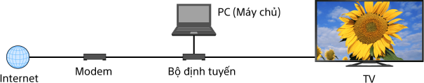 Bạn có thể phát tệp ảnh/nhạc/video được lưu trữ trên máy chủ (ví dụ: PC) được kết nối với cùng mạng gia đình mà TV được kết nối.