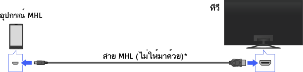 เชื่อมต่ออุปกรณ์ MHL ของท่าน (เช่น สมาร์ทโฟน, แท็บเล็ต) ที่มีช่องสัญญาณออก MHL เข้ากับช่อง HDMI IN 2/MHL ของทีวี โดยใช้สาย MHL