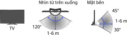 - Góc và khoảng cách xem khuyến nghị có thể thay đổi tuỳ thuộc vào vị trí của TV và điều kiện phòng.