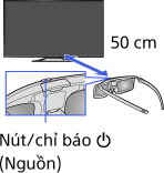 Khi sử dụng Kính 3D Chủ động lần đầu tiên, hãy đặt kính trong phạm vi 50 cm so với TV và bật TV rồi giữ nút/chỉ báo