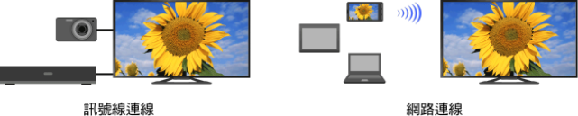 將不同裝置(例如,BD燒錄機、數位相機、PC、智慧型電話、平板電腦)連接到電視機。您可以播放相連接裝置上的影像和音樂等內容。