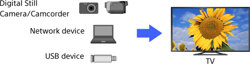 A photo with 4K or higher resolution can be displayed in 4K resolution (3840×2160). A digital still camera/camcorder that corresponds to HDMI 4K output connected to HDMI IN, or a high resolution photo that is stored on a USB device or network device, display in 4K resolution on the TV.