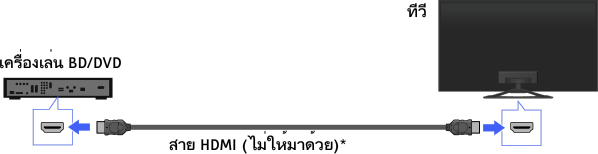 แนะนำให้ใช้การเชื่อมต่อ HDMI เพื่อให้ได้คุณภาพของภาพที่ดีที่สุด ถ้าเครื่องเล่นแผ่น BD/DVD ของท่านมีพอร์ต HDMI (ช่องต่อ) ให้เชื่อมต่อเข้ากับช่องนี้โดยใช้สาย HDMI