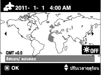 ท่านใช้กล้องที่ตั้งเวลาไว้ตรงกับเวลาของจุดหมายของท่าน ตั้งค่าท้องที่ของจุดหมาย