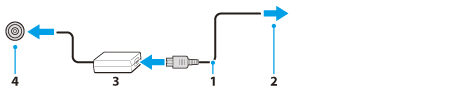 1. Plug the cable from the AC adapter (3) into the DC IN port (4) on your VAIO computer.