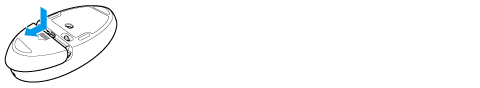 Turn the mouse upside down. Hold the center of the cover and slide the battery cover in the direction of the arrow.