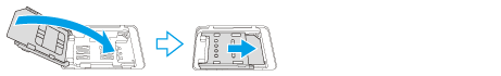 Slide the SIM card holder (1) in the direction of the arrow and then open the holder.