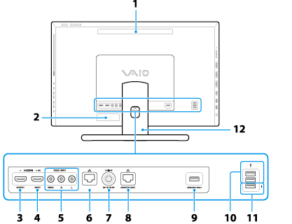 Describes the features on the back of the VAIO computer, such as connection ports.