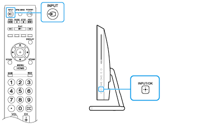 Press the INPUT button on the remote, or the INPUT/OK button on the right side of your VAIO computer.