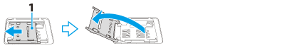 Slide the SIM card holder (1) in the direction of the arrow and then open the holder.