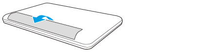 撥動並按住電池的 RELEASE 閂,再將指尖插入電池上的扣片下,然後依照箭頭方向將電池掀起。