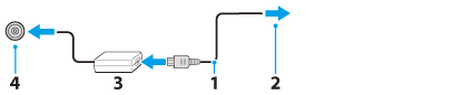 將交流電源轉接器 (3) 的電纜插入 VAIO 電腦上的 DC IN(直流電源輸入)連接埠 (4)。