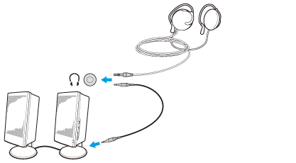 使用喇叭電纜(未隨附),將外部喇叭連接到耳機插孔