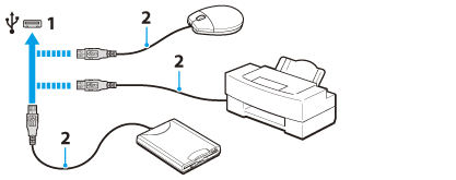 您可以將通用序列匯流排 (USB) 裝置(例如滑鼠、軟碟機、喇叭或印表機)連接至 VAIO 電腦。
