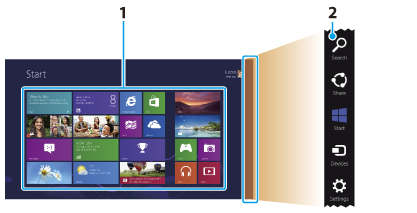 搜尋應用程式和檔案,分享內容,在其他裝置上播放內容或者列印,以及設定 VAIO 電腦。