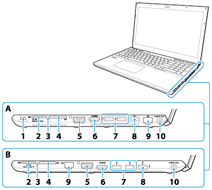 Describes the features on the sides of the VAIO computer, such as connection ports.