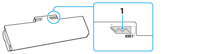 Slide the battery LOCK switch to the LOCK position to secure the battery pack on your VAIO computer.