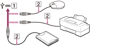 You can connect a Universal Serial Bus (USB) device such as a mouse, floppy disk drive, speaker or printer to your VAIO computer.