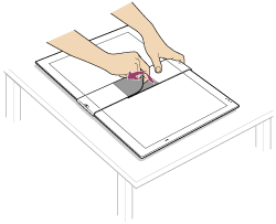 - Peel off the tape that secures the stand during shipment.