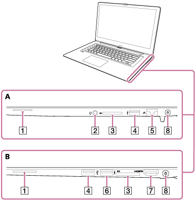 Describes the features on the sides of the VAIO computer, such as connection ports.
