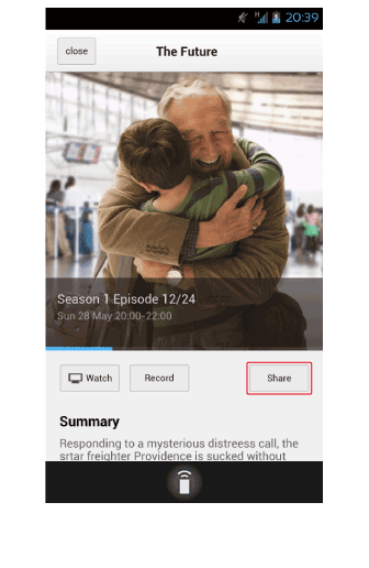 Puede consultar la información detallada del programa o contenido seleccionados. También puede publicar información en un servicio de red social. Toque un nombre de programa o el nombre de contenido para mostrar la información detallada.