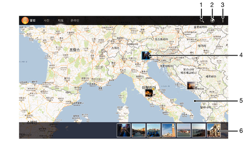 앨범 지도에서 위치 태그가 지정된 사진을 보려면