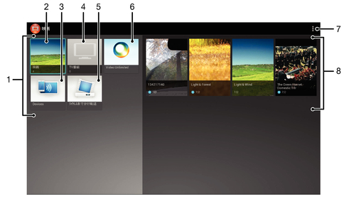 | 8 | 選択したビデオカテゴリーのコンテンツを表示します。 |