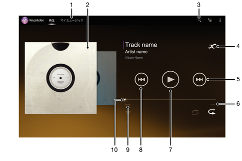 | 10 | 進捗インジケーター - インジケーターをドラッグするかラインに沿ってタップすると、早送りまたは巻き戻しを行います |