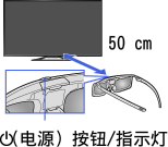 首次使用主动式3D眼镜时,请在电视机50 cm范围内握住眼镜,打开电视机并按住