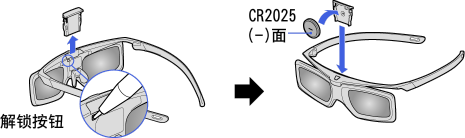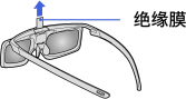 首次使用主动式3D眼镜前,请取下电池上的绝缘膜。
