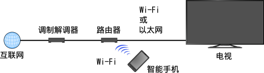 按钮进入“连接互联网”了解详细说明。将移动设备连接到已连接电视机的家庭网络。